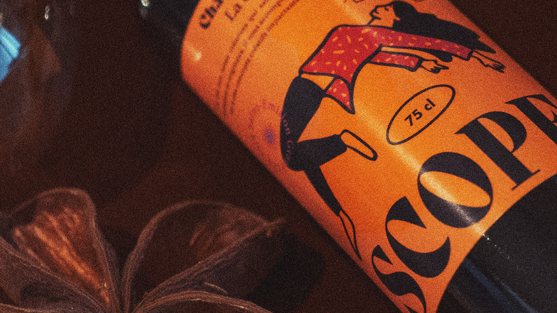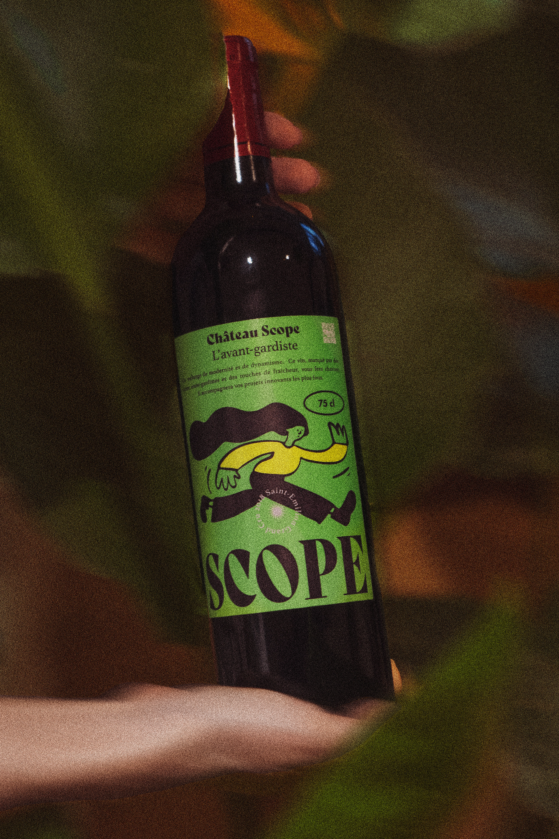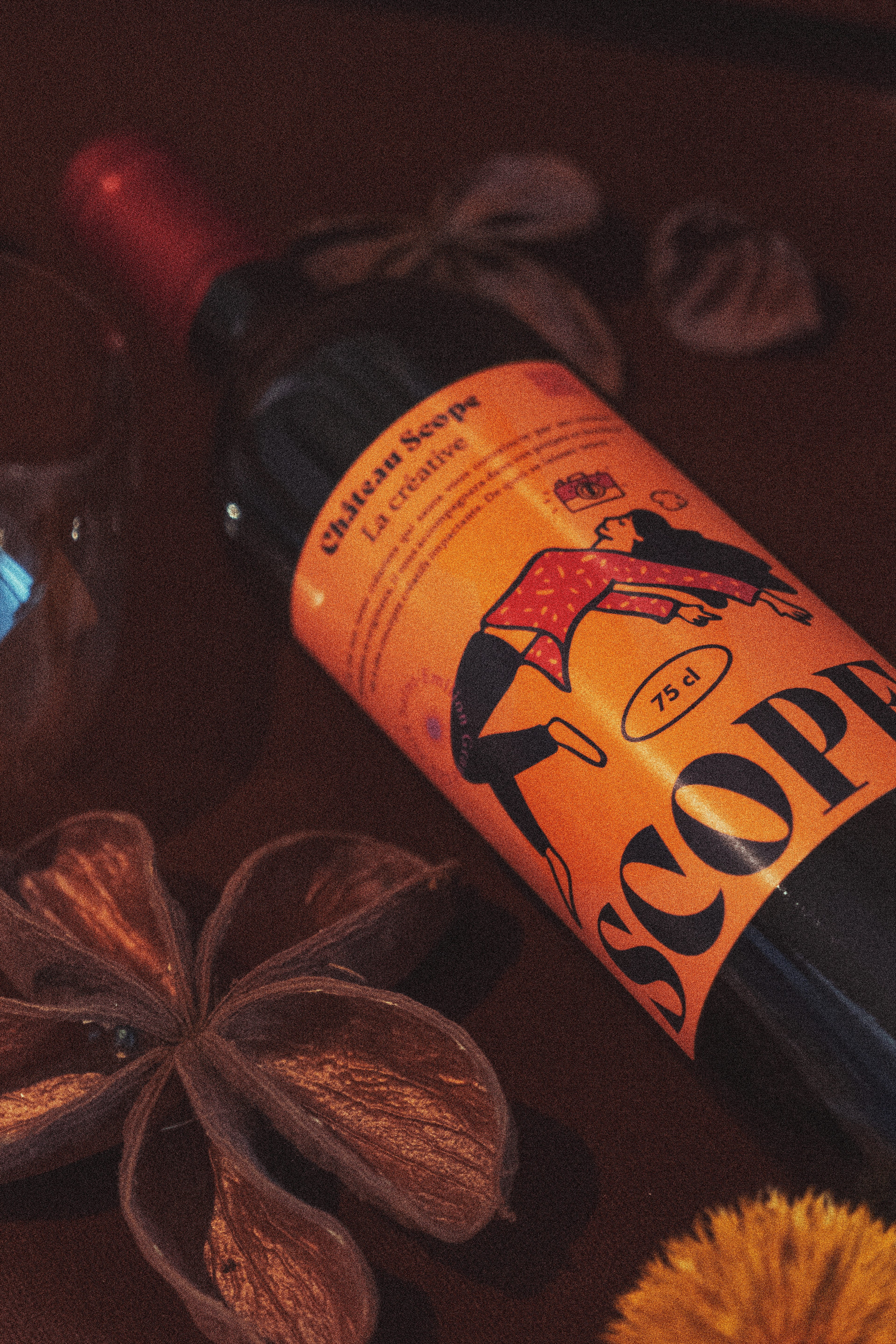 Création sur-mesure pour des bouteilles de vin, conçues spécialement pour les vœux Scope 2023 et offertes aux clients.